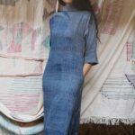 Reclaiming aspects of the Self that have been suppressed by entrenched systemic colonization of our bodies and mindscapes. A TWO WAY SHIRT DRESS can be made into high neck shirt dress. The fabric is made entirely by hand in reclaimed khadi yarns, dyed in natural indigo, handwoven them into twill twill, creating a denim fabric. Making uniform more contemporary, the dress features fitted silhouettes and zero waste pattern inspired by achkan, a traditional costume.