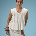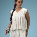 The Noor Flare Top is a timeless blend of elegance and comfort. Crafted from soft, handwoven fabric, this sleeveless top features delicate pleats that cascade effortlessly, creating a flowy silhouette. The subtle gold or ivory threadwork adds a touch of understated luxury, making it perfect for both casual and festive occasions. With its airy fit and gentle drape, the Noor Flare Top embodies grace and lightness—just like its name, “Noor,” meaning radiance