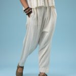 Effortlessly chic, the Noor Pants blend comfort and elegance. Crafted from soft, handwoven fabric with subtle gold or ivory threadwork, they offer a relaxed fit with gentle pleats and a tapered hem. Deep pockets and a comfy waistband add practicality, making them perfect for both casual and elevated looks.