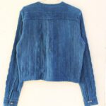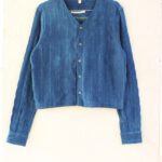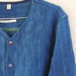 Indigo-dyed full-sleeved top with multi-colored buttons. The fabric is woven from waste provided by a garment factory in Kolkata and Kala cotton yarn.