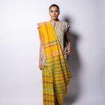 Grace yourself with this flat weave waste saree, perfect for summers. With tassles on the pallu, the saree exudes a yellow base merged with colors of pink, green, and red. The selvedge permits an interaction of the wearer with the waste, for utter intricacy with the process.